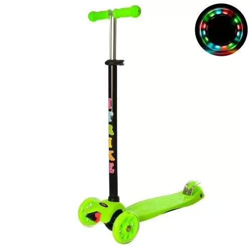 • Самокат оснащений трьома колесами, які забезпечують стійкість та безпеку.