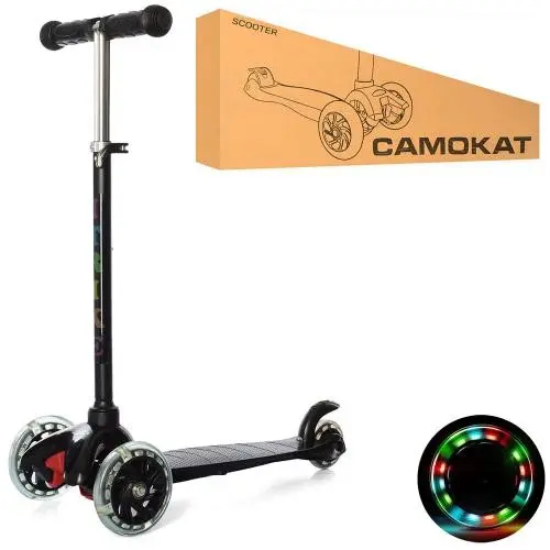 Самокат оснащений трьома колесами, які забезпечують стійкість та безпеку.